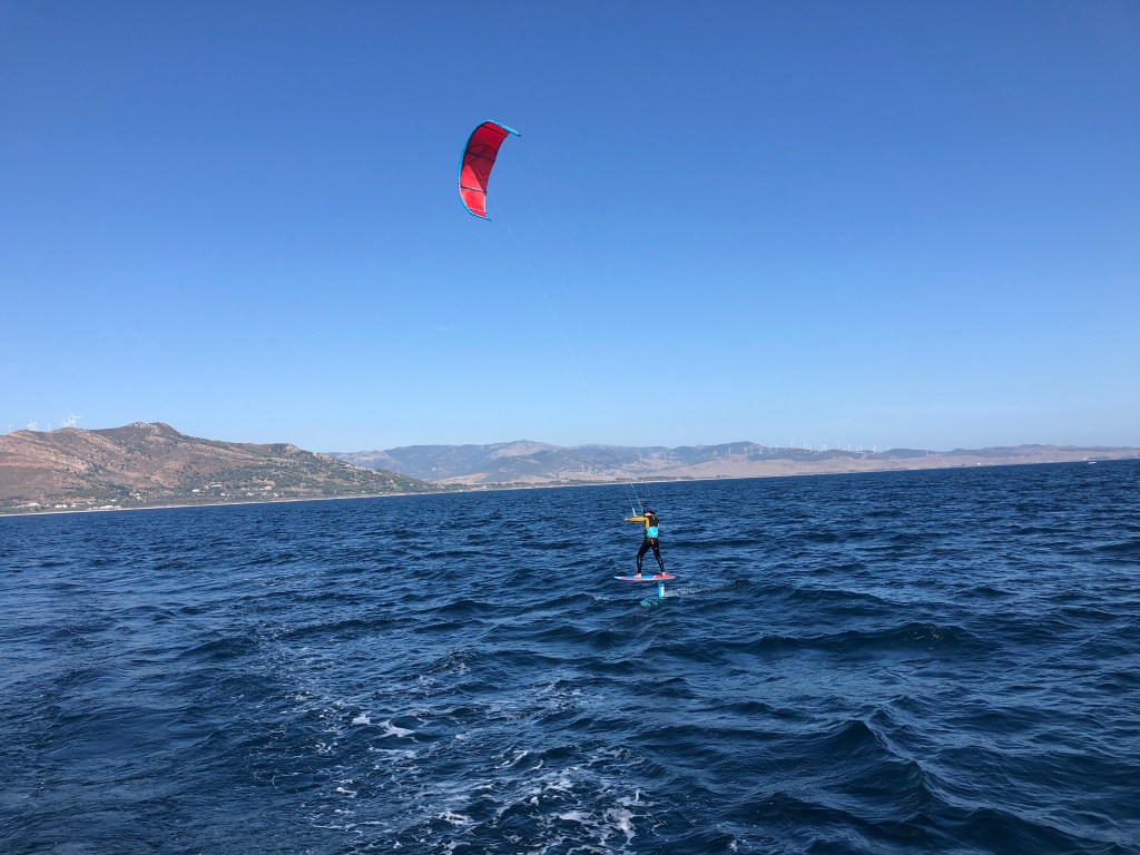 Der Küste entlang ging es in Richtung Tarifa. Ein Ort welcher von der Gibraltardüse reichlich mit Wind versorgt wird und die Surfers-Herzen höher schlagen lässt. Das war ich auch einmal – ein Surfer! Und ich würde es gerne nochmals probieren. Nur heute segeln sie nicht mehr sonder mehrheitlich „paragliden“ (mit dem Gleitschirm auf einem „Bord“) oder wenn sie segeln dan wird „gefoilt“ (sich schwebend über dem Wasser bewegen). Ich wäre schon glücklich, wenn ich auf dem Wasser gleiten könnte, wie damals auf dem Gardasee!