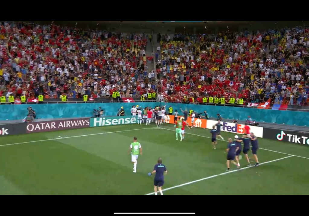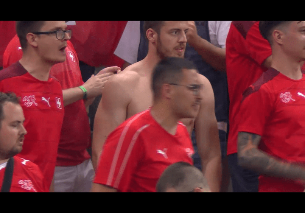Natürlich läuft auch bei uns die Fussball-Europameisterschaft und natürlich haben wir auch mit der Schweizer-Nati gelitten, bis zum bitteren Ende! Matteo war bei dem historischem Sieg über Frankreich in Bukarest dabei und war fast so viel zu sehen am Fernsehen (links) wie der „leidende Luca“ (rechts).