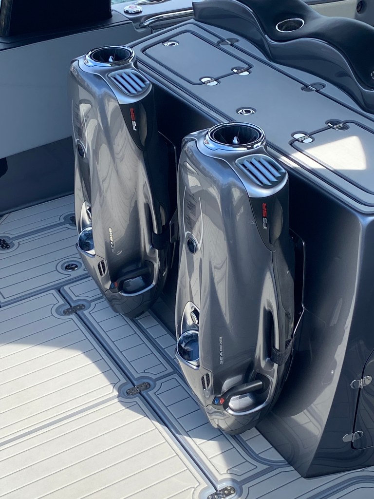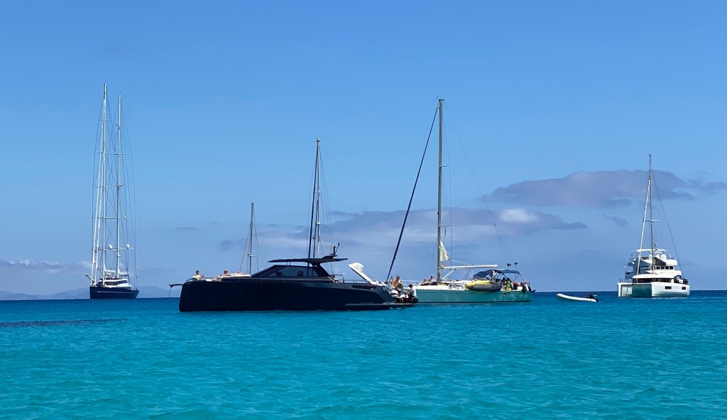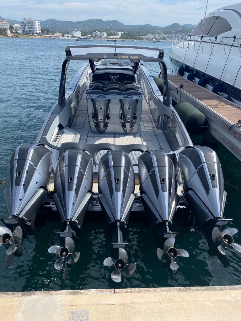 Weil die nächste Bucht gerade mal 5 Seemeilen entfernt ist: 2’250 PS auf einem Motorboot, habe ich auch noch nie gesehen. Greta lässt grüssen….