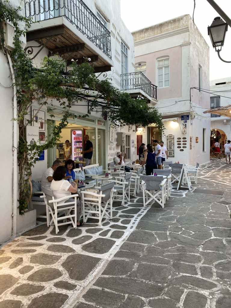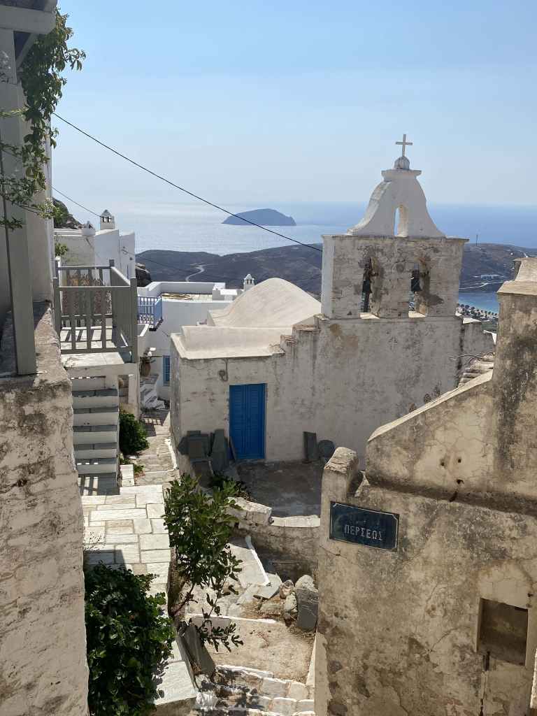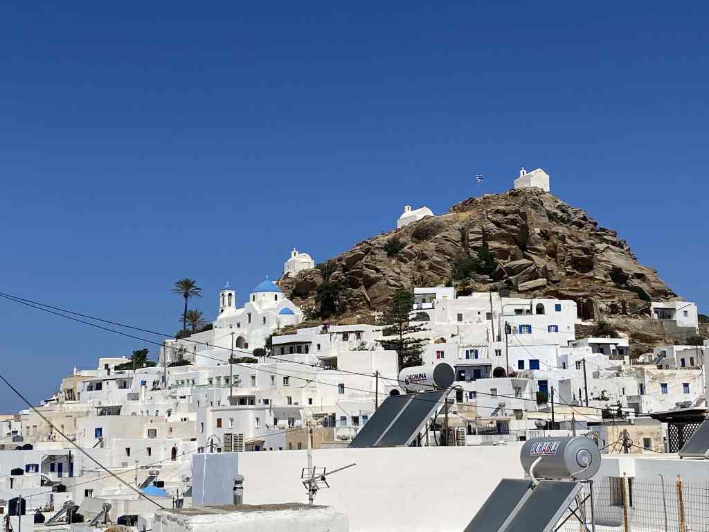 Kykladen – da wo Griechenland so ausschaut wie wir es aus der Werbung kennen. Tiefblaues Meer, von der Sonne verwöhnte Inseln mit „weisen Dörfern“ auf dem Berg und Tavernas am Sandstrand. Ein Traum für jeden Reisenden und jeden Segler. Es wäre so schön…. Ihr ahnt es schon – es gibt ein Aber! Der Spielverderber heisst hier Meltemi (türkisch) oder Etesians (jährlich wiederkehrend / griechisch). Das „Biest“ plagt uns schon seit Tagen und hat uns bereits einige „Buchttage“ mehr beschert als es uns lieb ist. Mit Windstärken zwischen 20 und 30 Knoten, an exponierten Stellen bis 40 Knoten (= Sturmstärke) bläst er seit Tagen und so soll es bleiben, mindestens noch eine weitere Woche lang. Die meisten Winde legen sich abends ins Bett und schlafen ein. Nicht so der Meltemi – der bläst Tag und Nacht – Abends am stärksten, am Vormittag etwas weniger. Weniger heisst im Augenblick 25 Kn. Wenn man gegen an segeln muss, kommt noch der Fahrtwind dazu, sodass man unter 30 Kn scheinbaren Wind (7 Beaufort) gar nicht zum Segeln kommt. Vielleicht kann man im Schutz der Inseln etwas Ruhe finden? Denkste – hier kommen heftige Fallböen dazu, sodass einem die Segel und Schoten um die Ohren fliegen. Im nu hast du da nochmals 5 Knoten mehr Wind auf dem Tacho. Wir haben zusammen schon 15.000 Seemeilen im Kielwasser und sind definitiv keine Anfänger mehr. Kykladen sind (zumindest im Sommer) aber auch nichts für Anfänger!