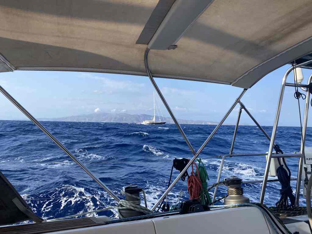 - Meltemi schläft manchmal für kurze Zeit ein, um kurz danach, um so heftiger um die Ecke zu kommen. Ein Reff mehr im Gross als man eigentlich normalerweise benötigt ist hier auf jeden Fall ratsam. Ausserdem noch „rechtzeitiger“ reffen und dafür aber mit dem Ausreffen länger zuwarten scheint uns der richtige Ansatz zu sein.