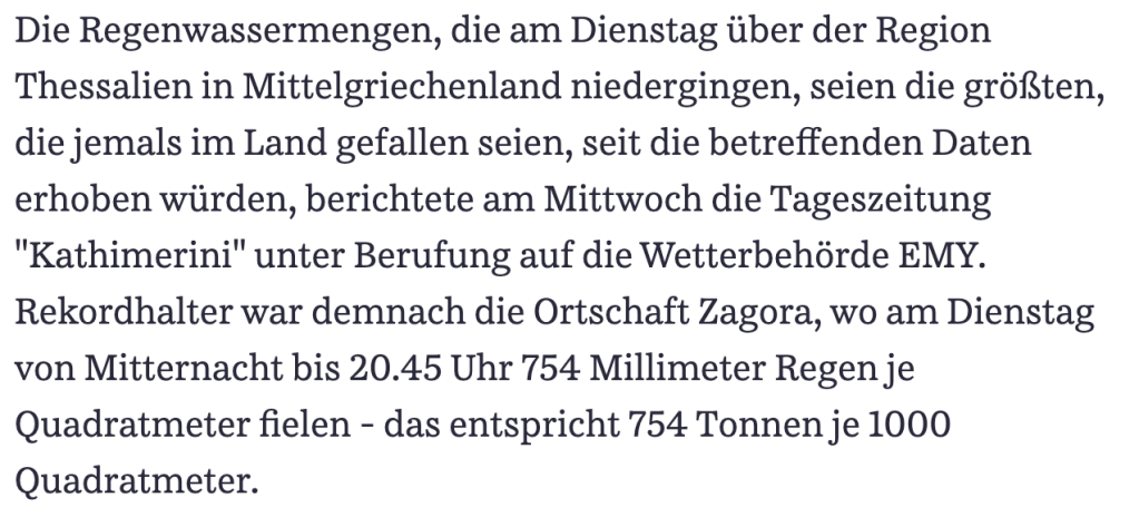 Hier haben wir das Sturmtief Daniel abgewittert, welches sich später zum Medicane entwickelt hat und in Nordosten Griechenlands, aber auch in Libyen schwere Überflutungen verursacht hat. In der Ortschaft Zagora fielen in weniger als 24 Stunden 725 mm Regen und in den Städten Zagora und Volos wurden binnen zwei Stunden 12.000 Blitze gezählt (wenn man den Griechischen Wetterdienst trauen kann?). Wir sind, bis auf Paar gewittrige Regengüsse, davon verschont geblieben.
