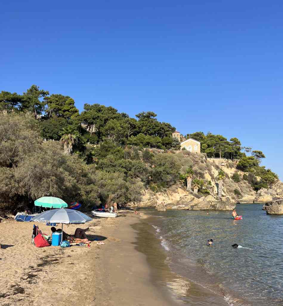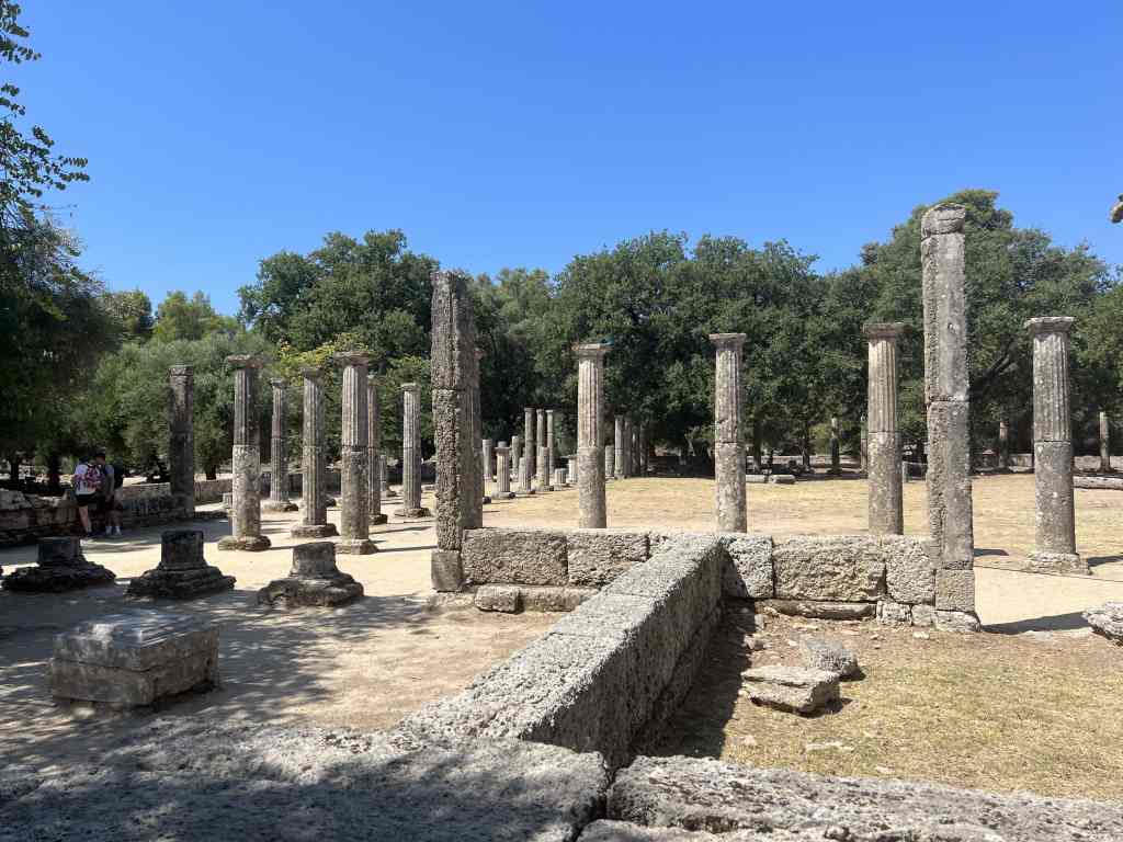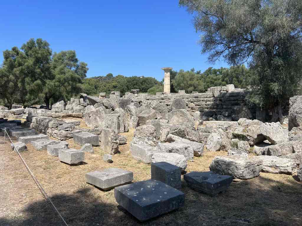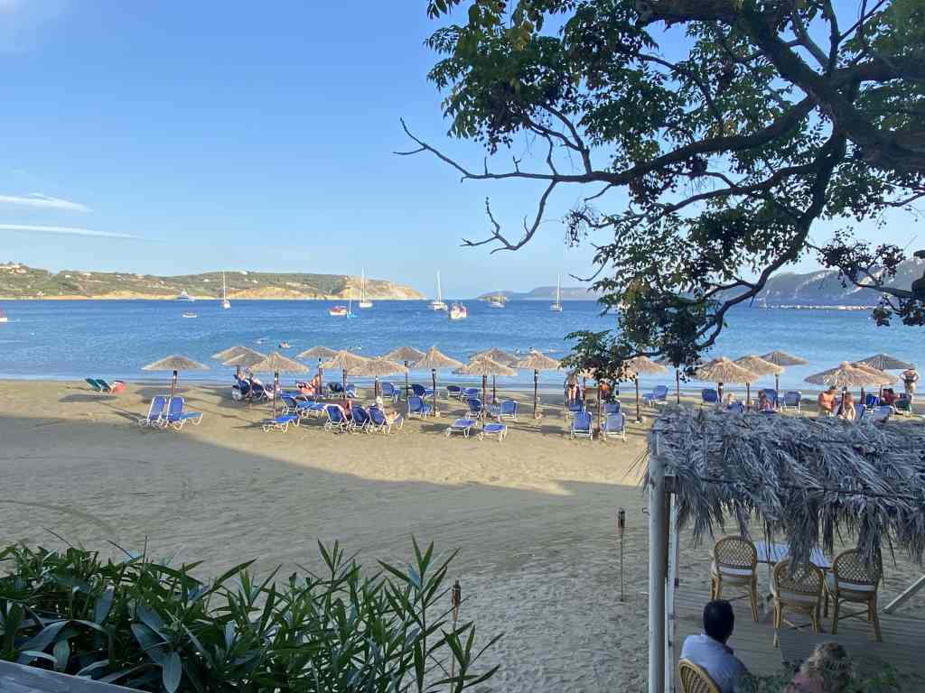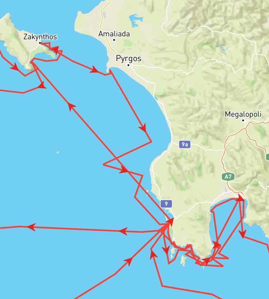 Nach der Abreise von Matteo aus Zakynthos sind wir sehr bald nach Katakolon auf dem Peloponnes aufgebrochen. Katakolon ist der Hafen in dem die grossen Kreuzfahrtschiffe die Olympia-Besucher ausladen. Caro kennt die entsprechenden Internetseiten, sodass wir uns den passenden Besuchstag ohne Kreuzfahrtschiffe aussuchen konnten. Die Fahrt mit dem Mietwagen nach Olympia dauert etwas mehr als eine halbe Stunde. Neben den archeologischen Ausgrabungen kann man hier mehrere Museen besuchen, die mindestens so sehenswert sind. Auf dem Rückwege halten wir in der schönen Taverna To Kyma am Strand von Katakolon. Die Bucht vor dem Hafen ist gut geschützt von den vorherrschenden Winden aus NW. An Baden ist leider nicht zu denken, da hier unzählige Medusen am Schiff vorbei ziehen.
