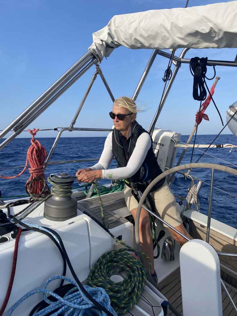 Um einen besseren Windeinfallswinkel und konstanteren Wind zu bekommen, sind wir zunächst nach Zakynthos gesegelt. Von der Laganas-Bucht ging es dann mit konstantem Rückenwind zwischen 15 und 30 Knoten auf kürzestem Weg nach Siracusa in Sizilien. Für rund 310 Seemeilen haben wir lediglich 42 Stunden gebraucht. Zum ersten Mal ist es uns gelungen eine so lange Strecke ganz ohne Motor zu bewältigen. Das hat richtig Spass gemacht! Die mittlerweile schon 10-jährige Dame segelt steif und aufrecht. Bereits ab einem wahren Wind von 15 Knoten läuft sie annähernd die Rumpfgeschwindigkeit von 9 Knoten. Flott unterwegs zu sein, macht (nicht nur) dem Skipper Spass.