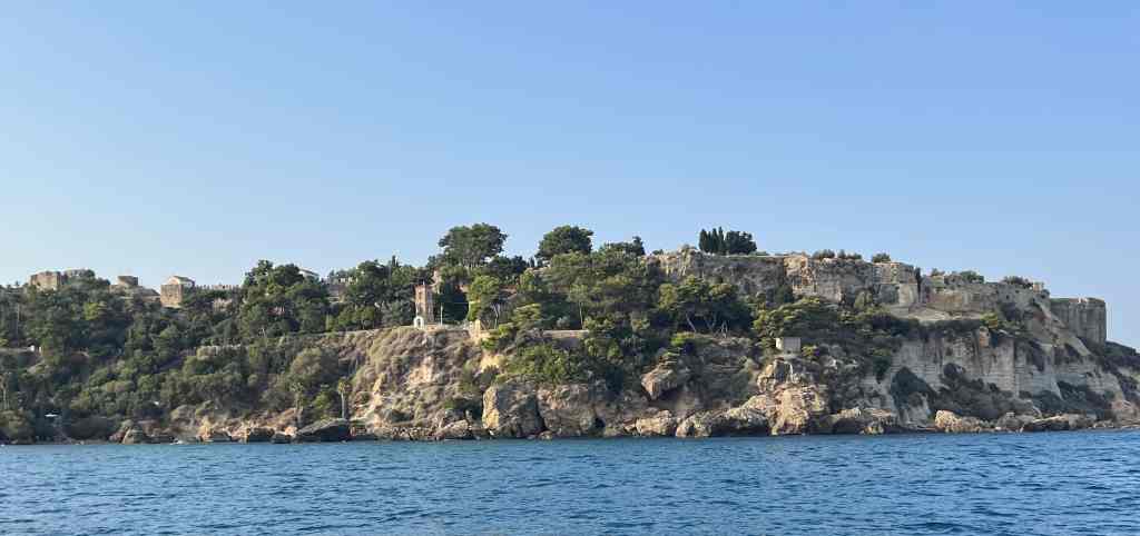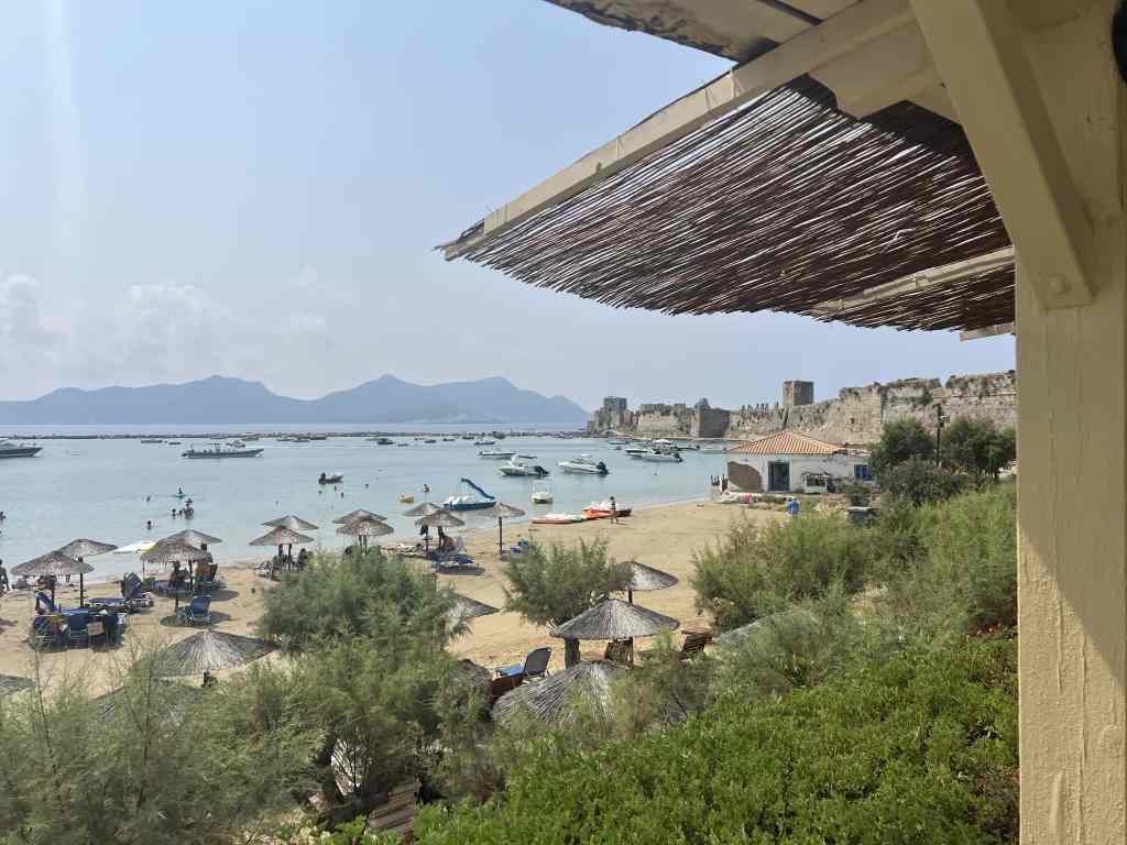 Soviel vorab – wir lieben Pylos! Dies ist jeweils der erste und der letzte Hafen welchen wir in Griechenland ansteuern. Die riesige Bucht bietet hervorragenden Schutz vor allen Windrichtungen. Die Stadt selber wirkt sehr unverfälscht und so relaxed, wie nur eine griechische Kleinstadt sein kann. Pylos ist auch Port of Entry für Griechenland. Sowohl Zoll wie auch der Hafenmeister sind direkt am Hafen. Hafenmole ist etwas zu hoch geraten aber für uns eigentlich kein Problem. Den besten Fisch in Griechenland haben wir jeweils hier im Restaurant Koukos gegessen. Frisch, vom Holzkohlengrill vom Chef selber sorgfältig zubereitet und von der Tochter bravourös geputzt. Dazu wird eine Olivenöl-Zitronen-Emulsion gereicht. Hmmmm-Himmlisch!!! Aber auch die Bougatsa, Galaktoboureki (siehe Bild) und Freddo-Cappuccino schmecken hier vorzüglich.
