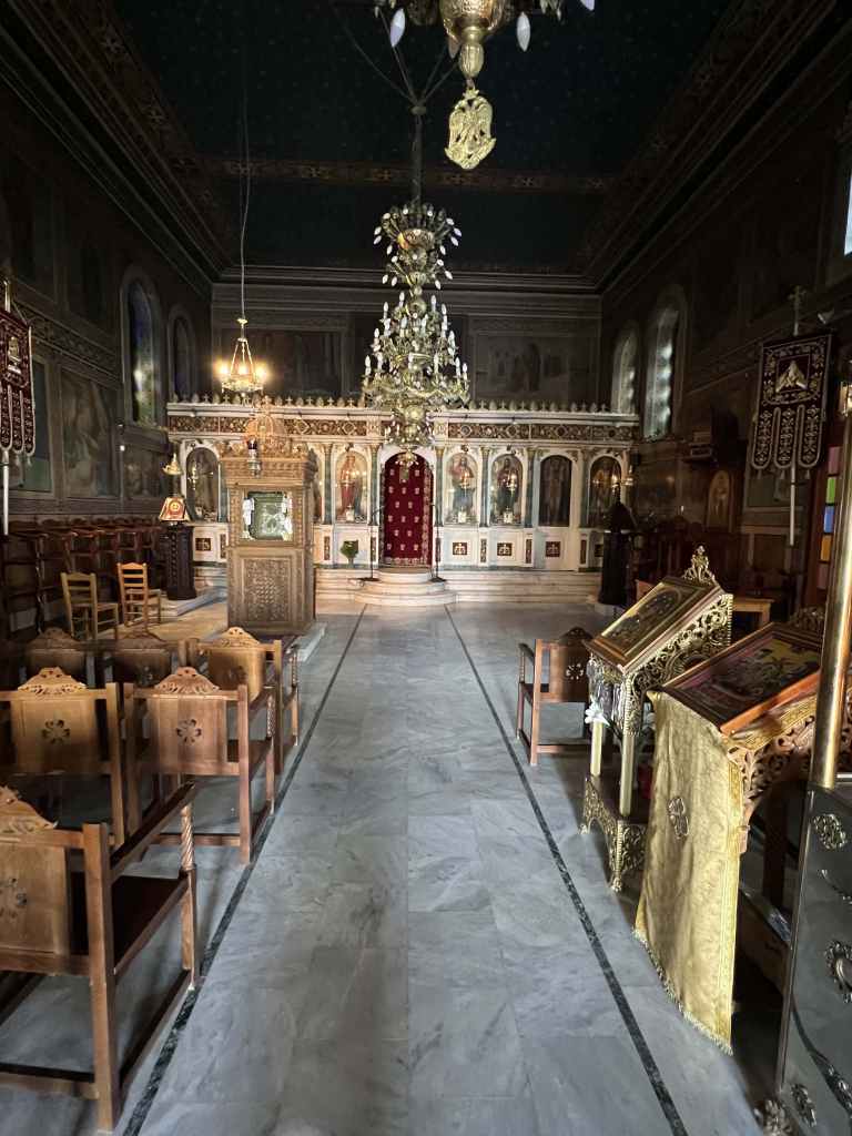 Das Stadtzentrum von Kalamata liegt rund zwei Kilometer vom Hafen und der Marina entfernt. Als wir vor einem Jahr da waren, haben wir es gar nicht besucht, weil wir bei der Stadtbesichtigung mit dem Elektroscooter nichts ahnend einfach viel zu früh wieder zum Hafen zurückgekehrt sind. Das haben wir diesmal nachgeholt. Hübsche Cafes und Restaurant säumen im Zentrum die Hauptstrasse. Das Restaurant Kardamo, mit seiner innovativen griechischen Küche und vorzüglicher Weinkarte ist eine neue Entdeckung, die uns bestimmt wieder in diesen Hafen locken wird.