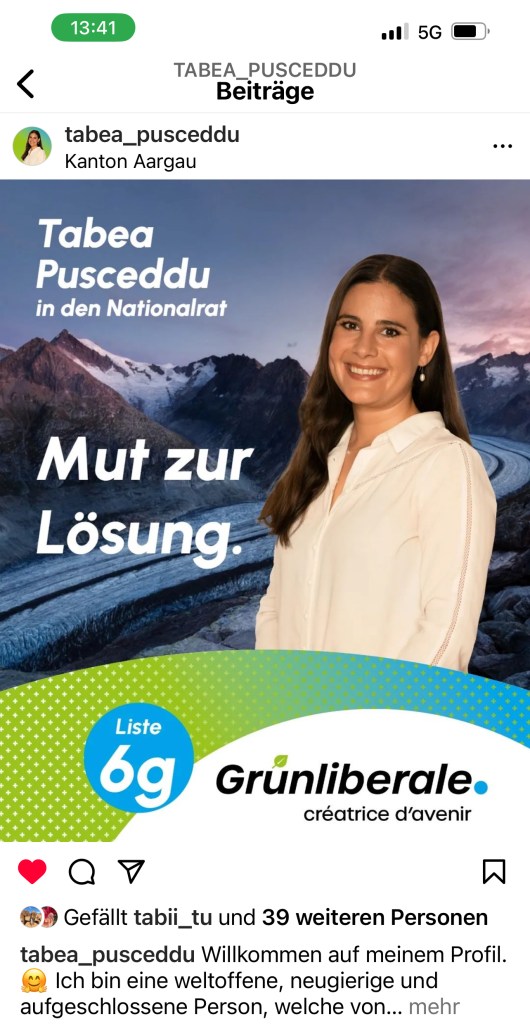 Wir reisen morgen Montag, 16. Oktober wieder nach Sizilien zurück. Für alle die da bleiben und nächstes Wochenende ihre Stimmzettel abgeben werden, empfehlen wir diese zwei jungen und kompetenten Kandidaten, die sich im Kanton Aargau für die Grün-Liberale Partei im Rennen für den Nationalrat befinden. Tabea und Luca stehen für eine weltoffene, wirtschaftlich starke Schweiz, die ihre Hausaufgaben im Klimaschutz mutig angehen will. Viel Erfolg!