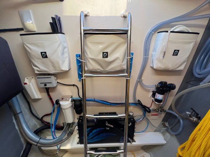 - Halterungen für Leinen und Taschen für Zubehör in der Segellast