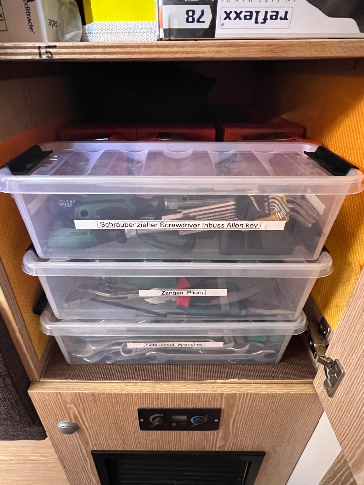 - 4 Cockpittaschen und zwei Boxen für Kleinzeug im Cockpit