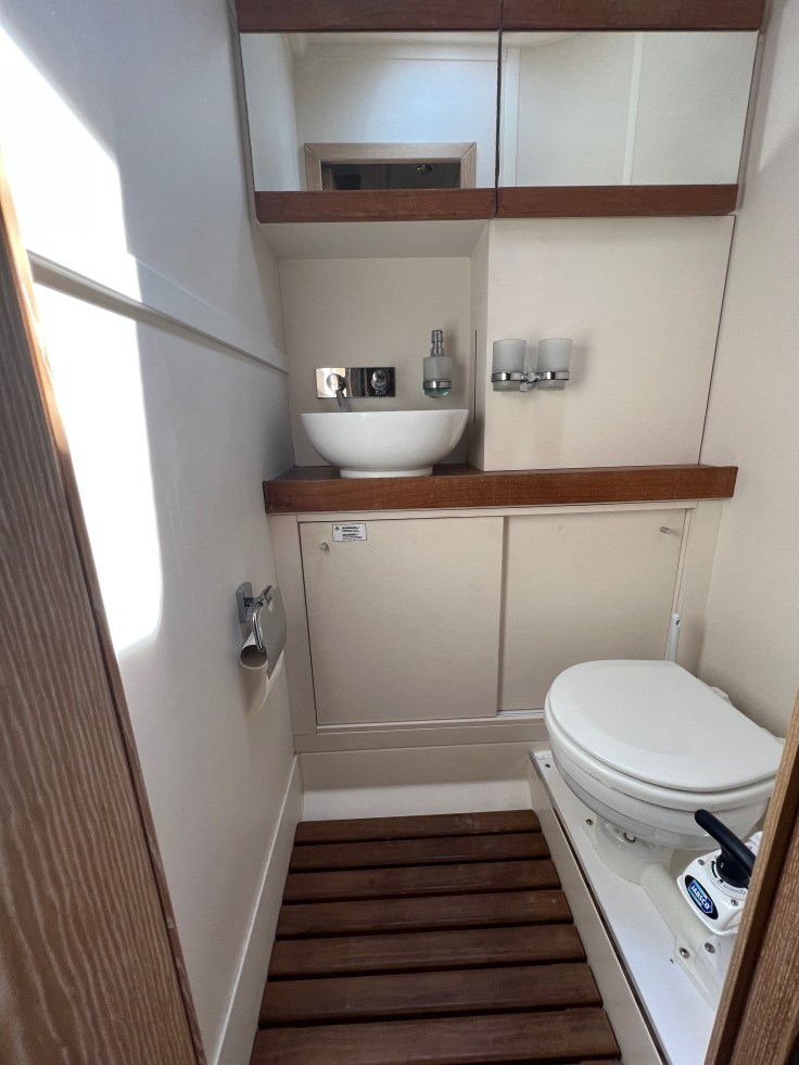 Es handelt sich um ein privat genutztes Boot mit 2.800 Motorenstunden. Die EU-MWST ist bezahlt. Sie segelt zu Zeit unter Schweizer-Flagge und liegt zur Zeit in Licata auf Sizilien auf Sizilien.