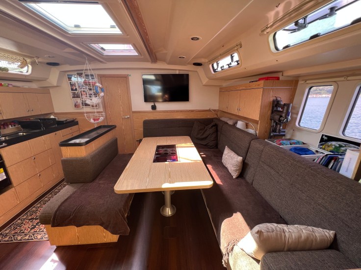 Das ist eine ausserordentlich gepflegte Eigneryacht, ausgelegt auf komfortables Blauwassersegeln und ausgestattet für lange Aufenthalte an Bord. Sie verfügt über drei Kabinen und zwei Bäder, die dem Eigner alle denkbaren Annehmlichkeiten bieten (Klima / Heizung in allen Kabinen, Wassermacher, Waschmaschine, grosse Kühlschränke mit separater Gefrier-Schublade, zusätzliche Stauräume in den Kabinen, Weinfach, TV / Fusion Stereo mit Apple TV usw.). Hanse 495 ist bekannt für ihr klares, übersichtliches Deck und ihr dynamisches Design. Ein echtes Judel / Vrolijk Design für „fast and easy Sailing“, mit Selbstwendefock und konventionellem Gross, alle Leinen werden zum Steuerstand geführt.